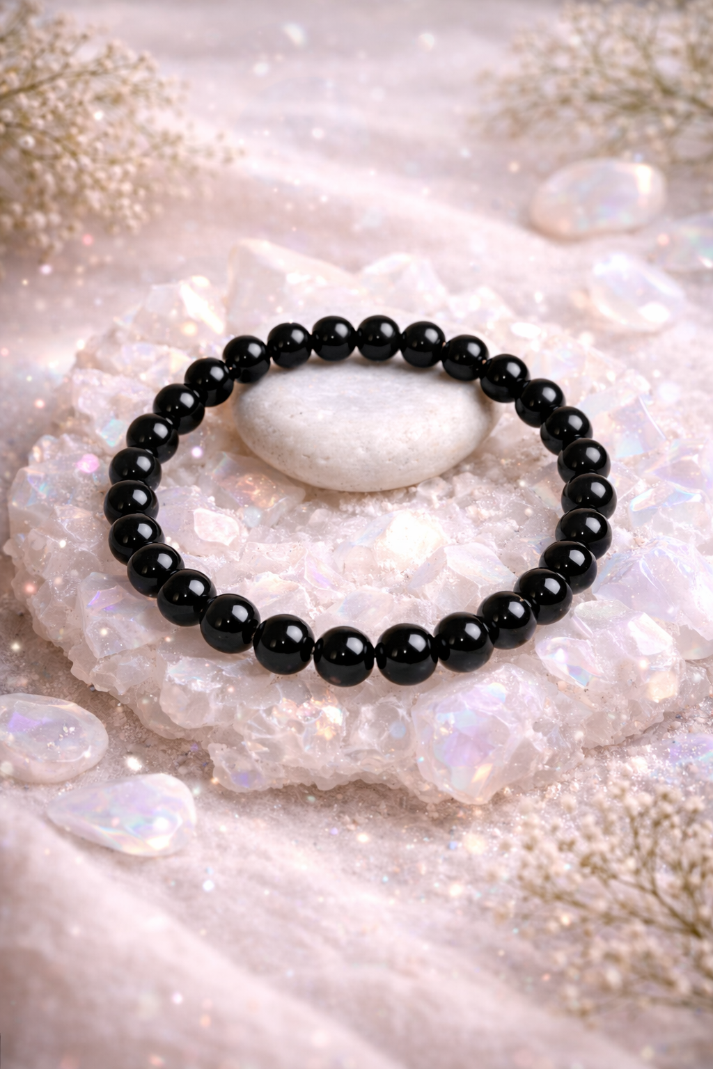 Black Obsidian is a powerful natural stone known for its deep black shine and smooth, glass-like surface. Formed from volcanic lava, it carries strong grounding energy and a sense of raw natural strength.