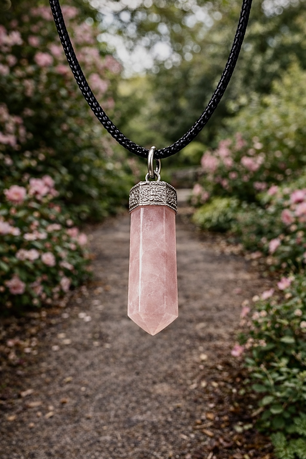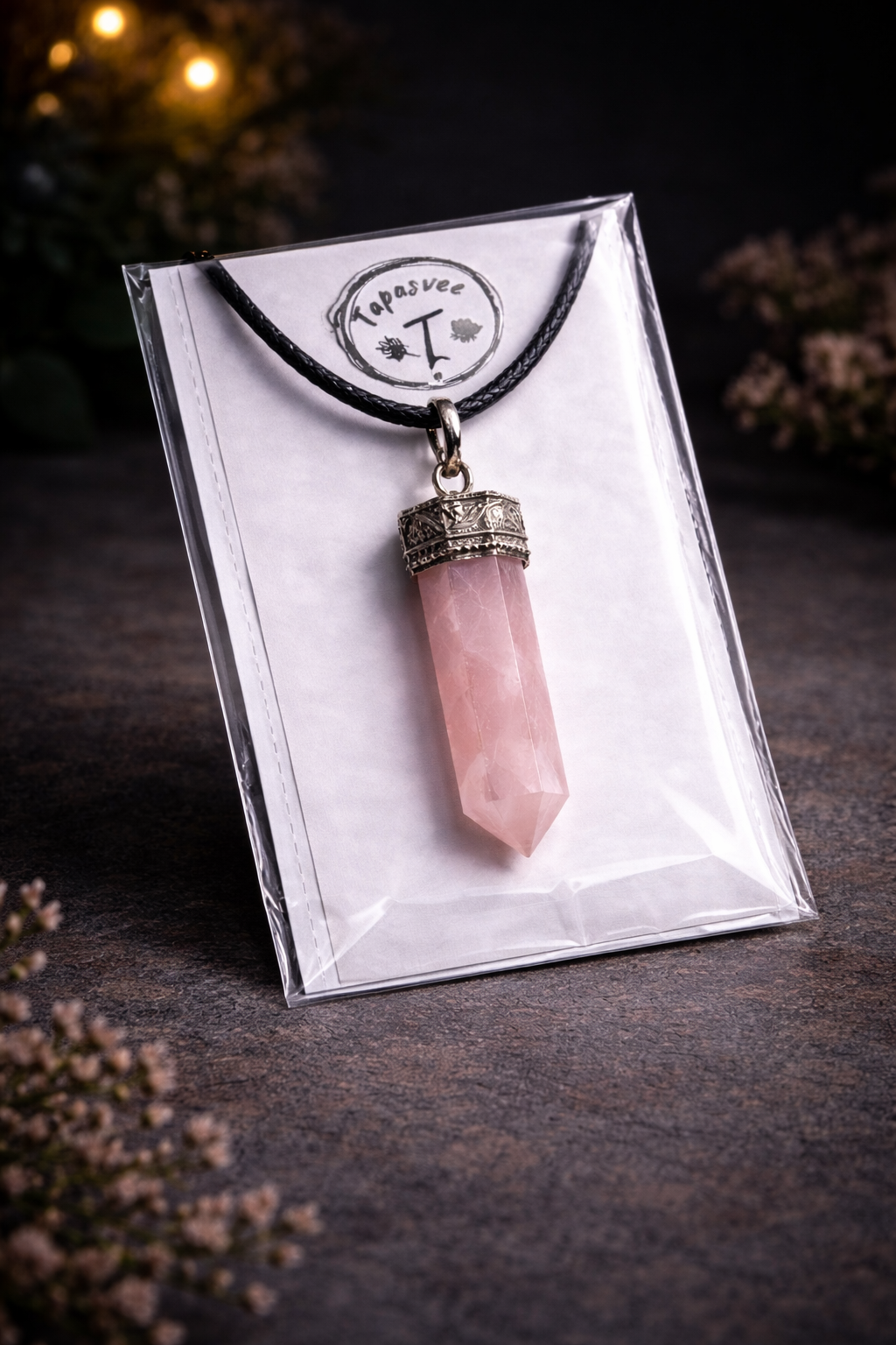 The Rose Quartz pencil pendant is a gentle and beautiful crystal known as the stone of love. It is believed to attract love, promote emotional healing, and encourage self-care. Wearing this pendant may help calm the heart, reduce stress, and bring feelings of peace and compassion. Its soft pink color makes it perfect for daily wear and positive energy.