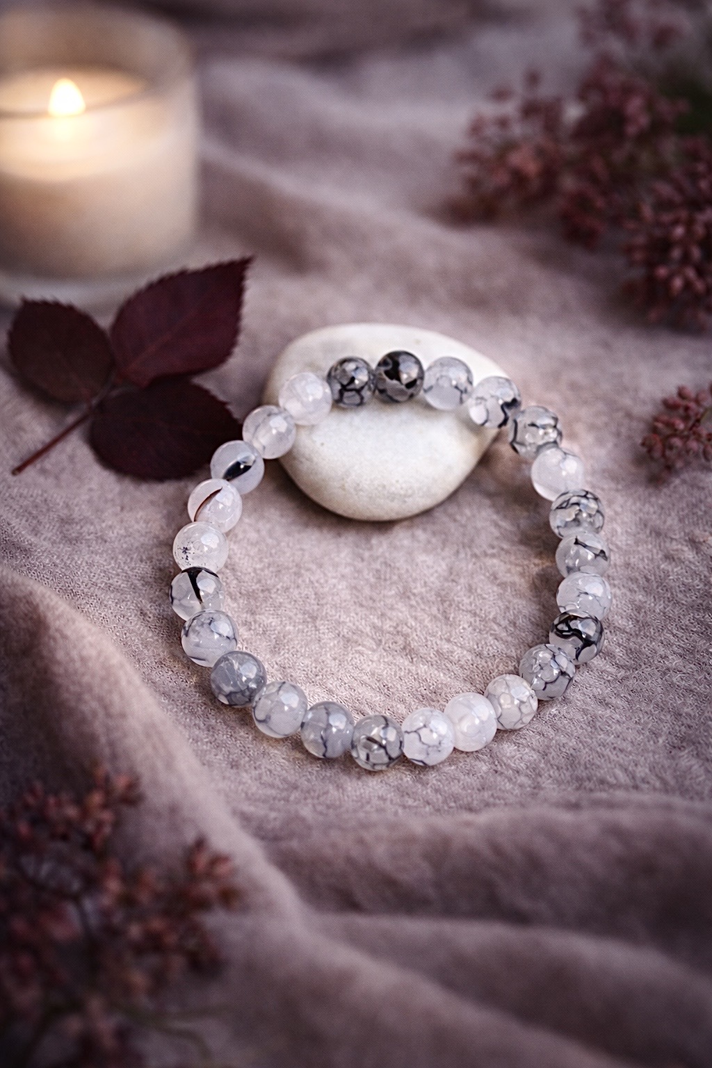 Often associated with grounding and emotional balance, Dragon Vein Agate is believed to enhance confidence, courage, and stability during times of change. Its vibrant colors and bold patterns make it a meaningful choice for those seeking both beauty and purpose.